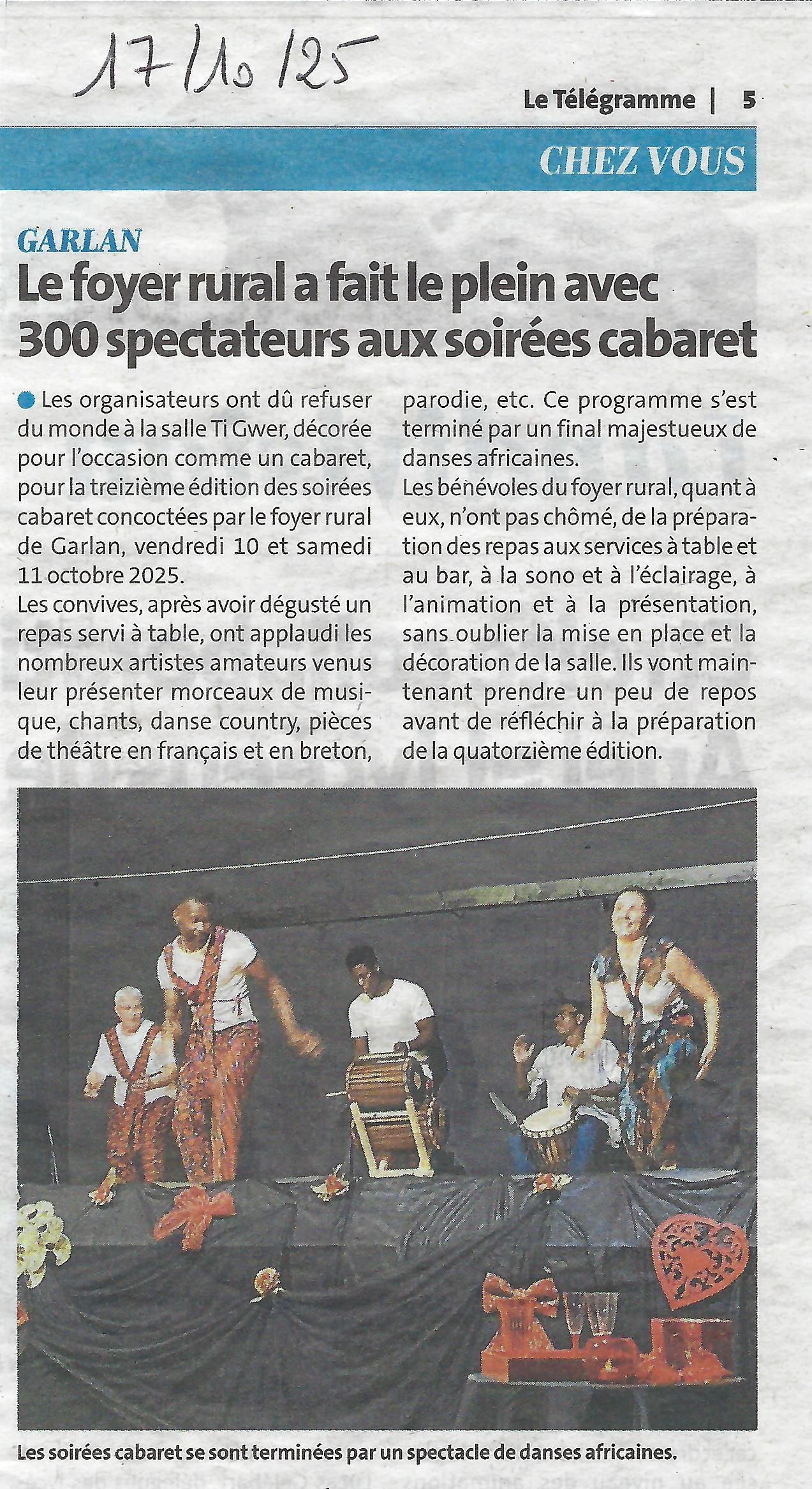 - 17 octobre 2025 – Le Télégramme – Soirées cabaret