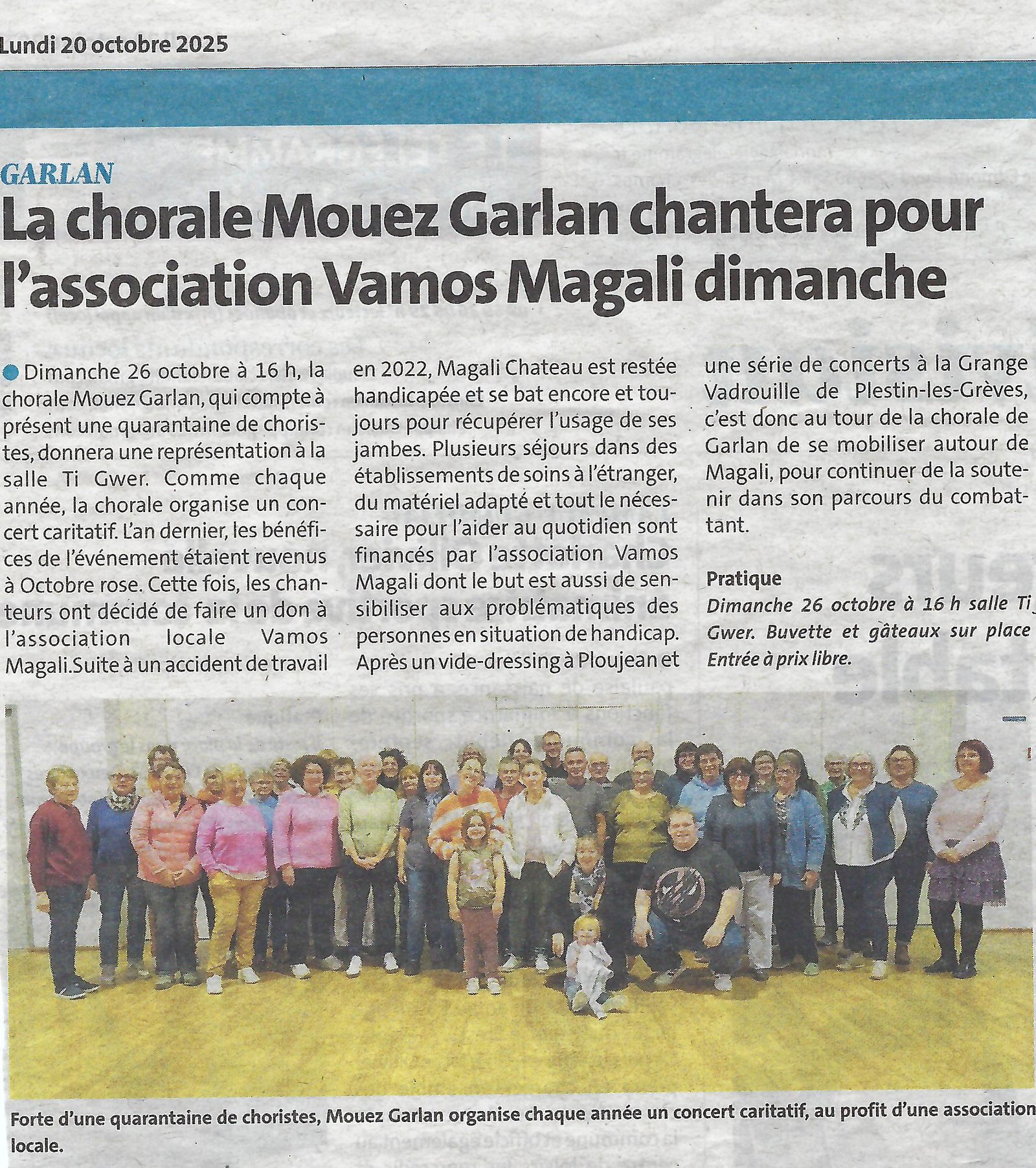 - 20 octobre 2025 – Le Télégramme – Concert chorale caritatif
