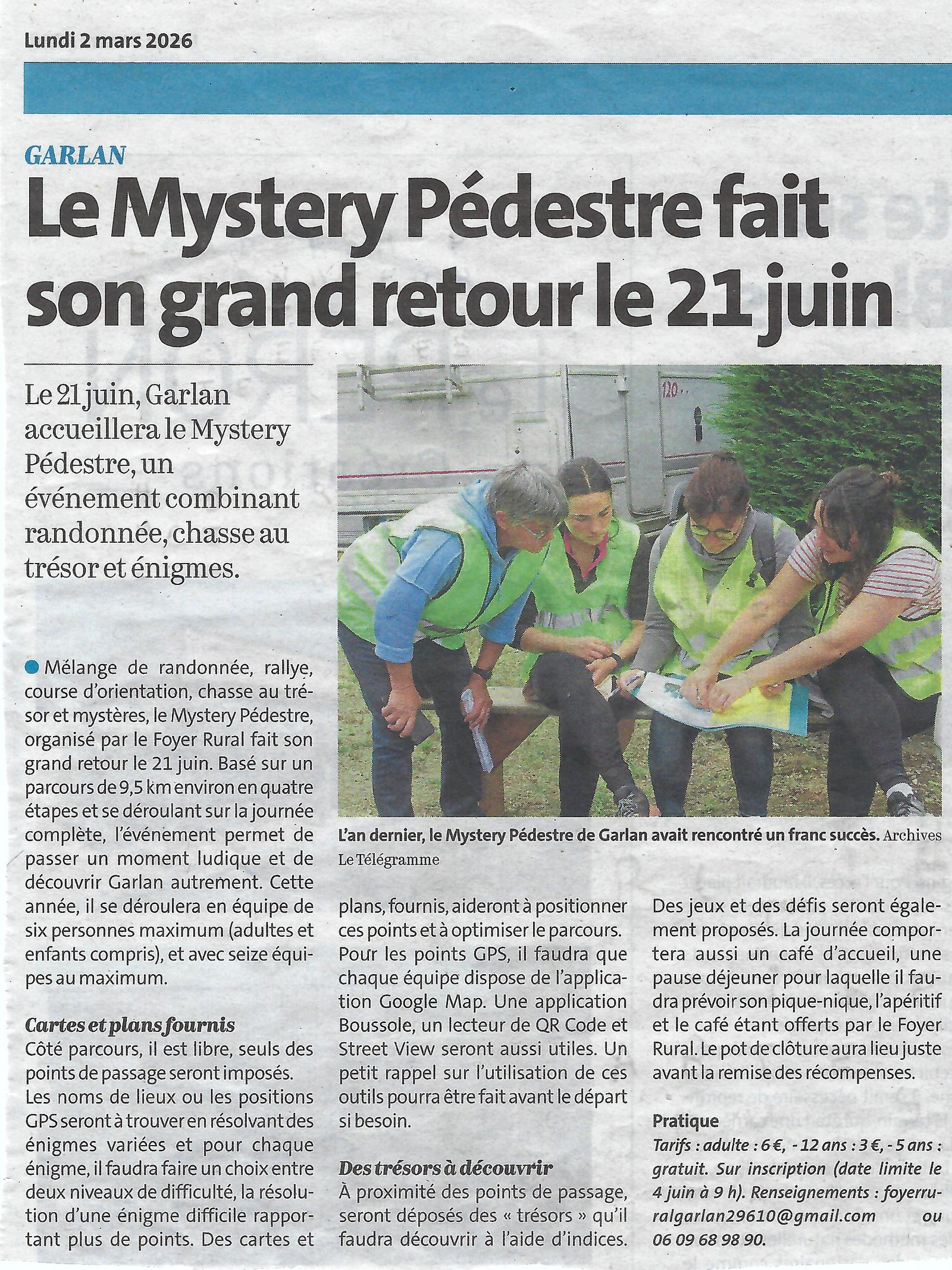 - 27 juin 2024 – Le Télégramme – Mystery pédestre