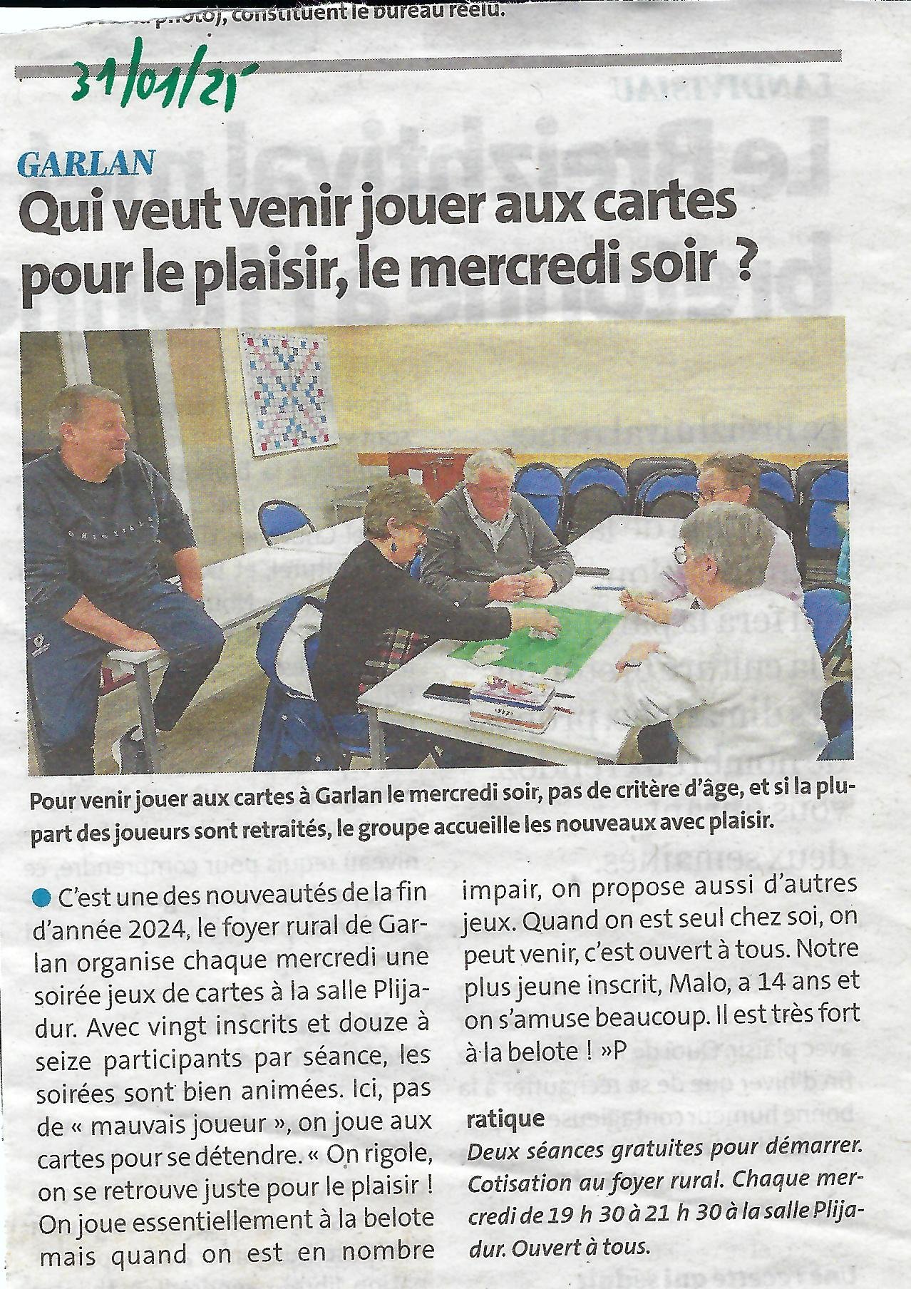 - 30 janvier 2025 – Le Télégramme – Jeux de cartes